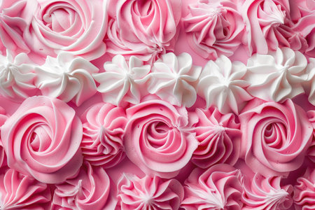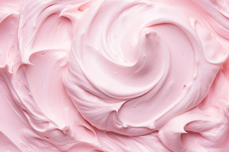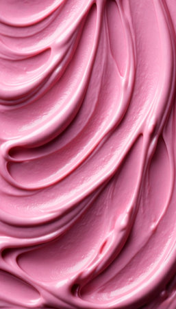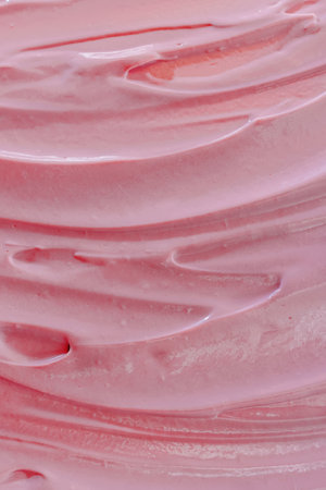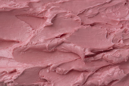 Pink frosting close-up, sweet whipped cream texture, abstract background