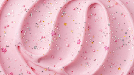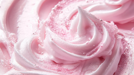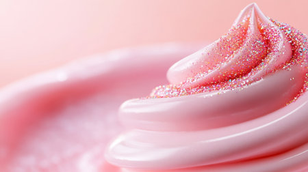 With showing close-up macro of swirled pink frosting with iridescent glitter and sparkles. resolution