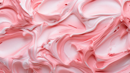 A close-up shot of pink frozen yogurt with smooth, creamy texture. Abstract background with swirls and peaks of the frozen ice cream surface. Generative AI