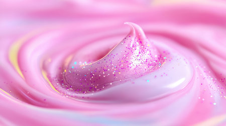 Artistic cream swirl with pastel tones and glittery texture on monochromatic pink scene