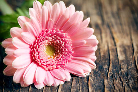 Gerbera flower on wooden table