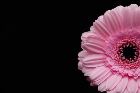 detail of pink gerber flower against black background