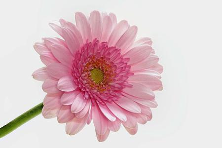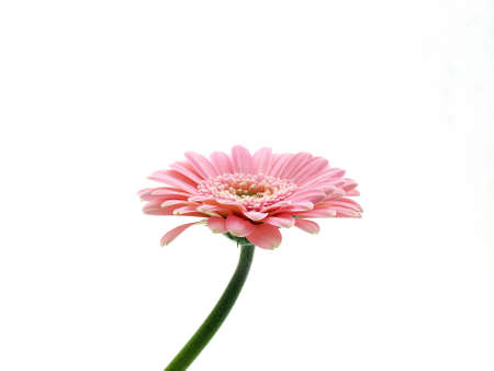 Pink gerbera with white background from the side