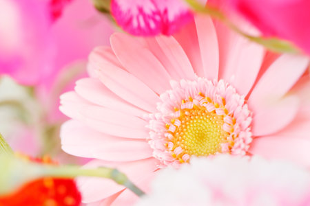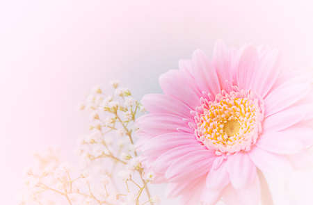 Soft defocused gerbera flower in pastel colors for background and copy space