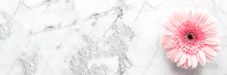 Light pink gerbera daisy flower on marble table background. Copy space