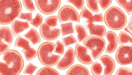A close up of a pile of sliced grapefruits, AI