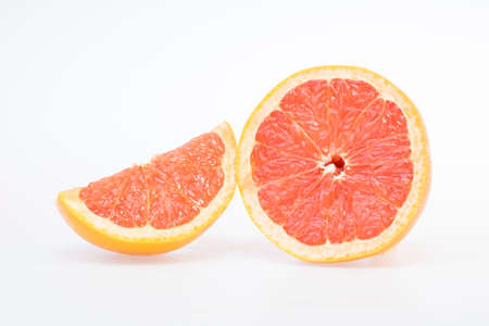 Fresh grapefruit pieces on white background