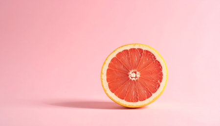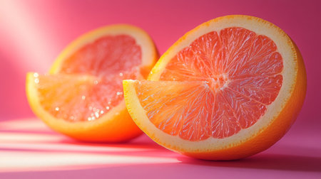 Close-up of fresh grapefruit slices arranged on a vibrant pink background, exuding freshness and energy.