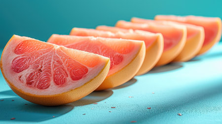 AI Generated. Grapefruit Wedges on Blue Gradient Background