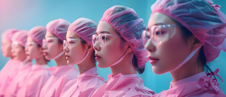 Digital artwork of clinic staff during an operation for wallpaper or magazine. Concept Medical Art, Operating Room Scene, Clinic Staff, Surgical Team, Digital Illustration