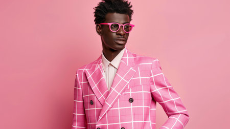 Stylish African Man in Pink Suit and Sunglasses on Pink Background