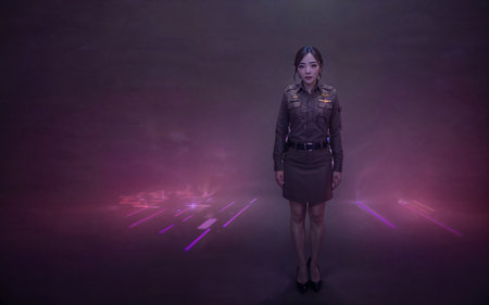 beautiful asian thai police woman at black background, generative AI