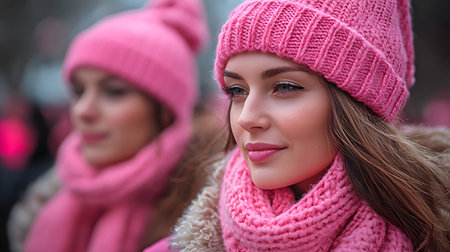 Explore the vibrant world of bold pink fashion with this stunning duo showcasing stylish winter wear. A striking blend of color attitude and modern aesthetics.