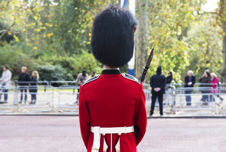 LONDON UNITED KINGDOM, OCTOBER 23 2018: the guards of the Buckingham Palace during the traditional Changing of the Guard ceremony London United Kingdom. Editorial use.