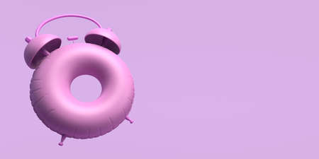 Summer vacation concept with inflatable float in the shape of alarm clock. Copyspace. 3D illustration.