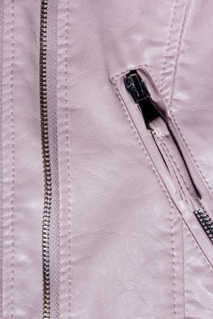 Close up of zipper on pink coat with texture