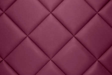 Shiny electric pink artificial textured leather stitched with thread. Close-up of sofa surface. View from directly above. Highly detailed background with copy space divided on few square parts.