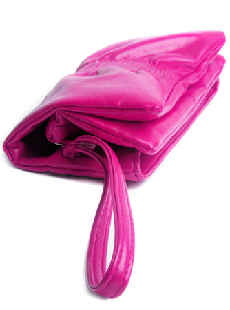 pink female handbag over white