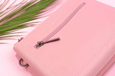 Pink women's bag close-up on a pink background