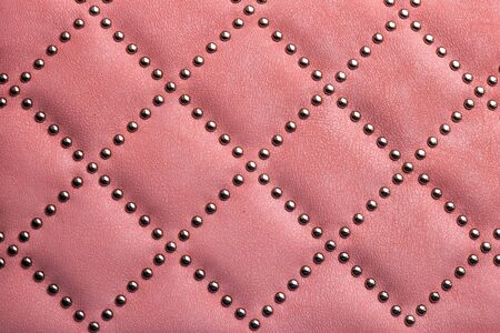 Pink leather with metal rivets closeup as a background.