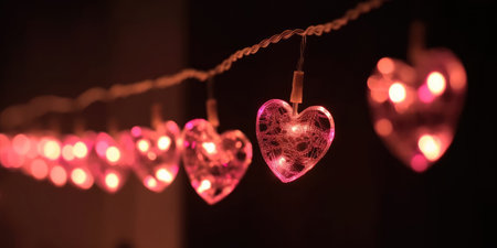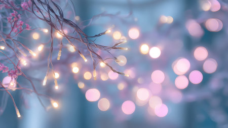 Christmas lights forming a castle shape blurred by a pink bokeh effect