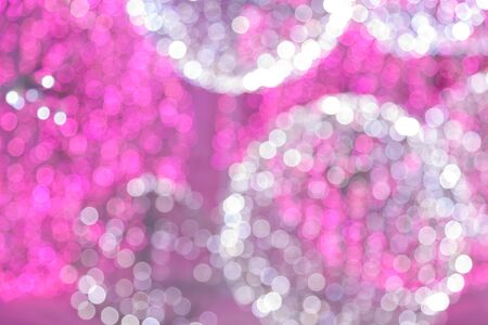 Bokeh light background of beautiful party at night. Pink and purple bokeh.