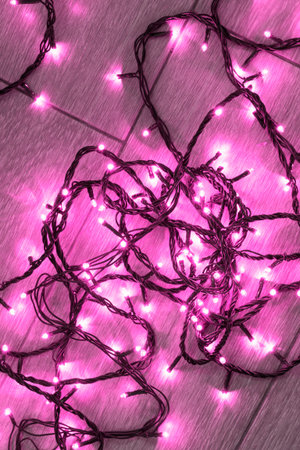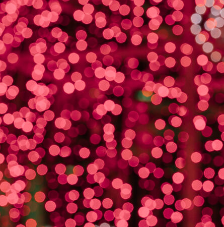 Defocused Christmas Bokeh fairy lights background. Christmas backdrop. Toned pink.