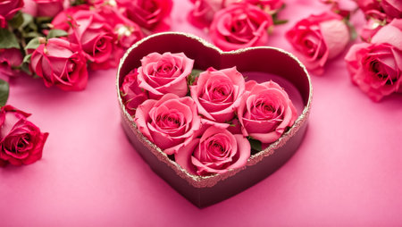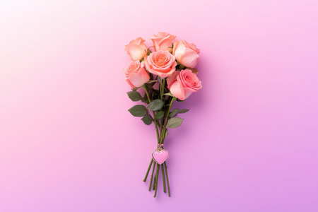 Romantic bouquet of pink roses lying on a vibrant pink background, creating a tender and lovely atmosphere perfect for valentines day, mothers day, or spring celebrations