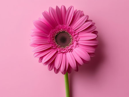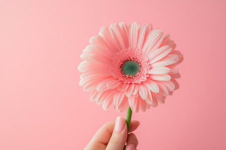 Vibrant petals of a pink gerbera daisy fan out beautifully, creating a serene aesthetic on a pastel background, perfect for a calming ambiance.