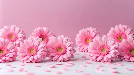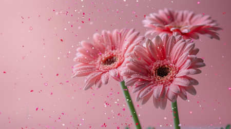 A close-up of pink gerbera daisies in soft focus, with a gentle and romantic aesthetic.