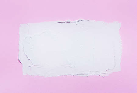 Top above overhead view photo of torn pink paper over white background with copyspace