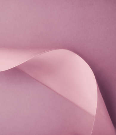 Metallic violet paper curved over light pink background. Minimal pastel backdrop