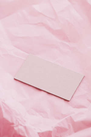 Business card flatlay on pink tissue paper background, luxury branding flat lay and brand identity design for mockup