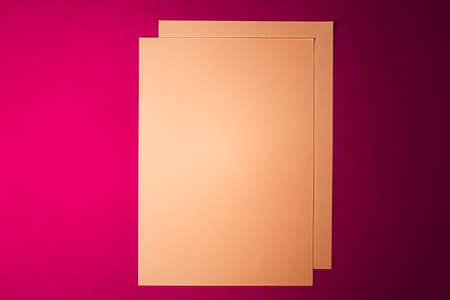 Blank A4 paper, brown on pink background as office stationery flatlay, luxury branding flat lay and brand identity design for mockup