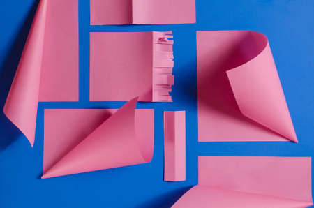 Thick paper of different colors top view. background with geometric shapes. Abstract background from sheets of gray, pink and blue paper. Abstract paper - colorful background, creative design