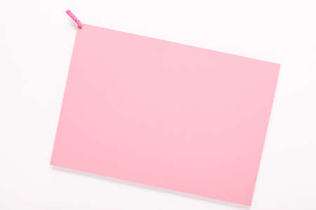 postcard pink rectangular sticker and pink clip in the form of a heart on a pink background. Monochrome minimalistic background. space for text.