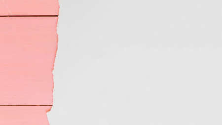 One white sheet of paper torn from a notebook, on a pink background with a copy of the space.