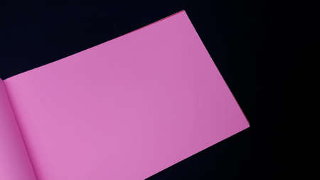 Minimalist concept, abstract colored paper geometry background, flat lay top view, multicolored empty image with copy space for any design purposes, bright yellow, bright pink, simple black