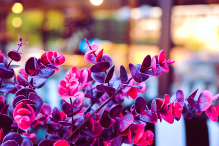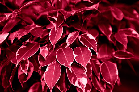 Closeup photogrpahy of gloss ficus leafs,colored in trendy red color of 2023.