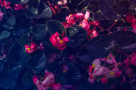 Pattern of beautiful natural red and pink begonia flowers, blooming in flower garden for background and wallpaper