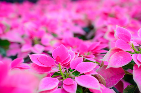 Close up of pink Christmas stars. Pink Poinsettia flowers or Euphorbia Pulcherrima