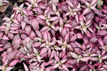Variegated plants leaves background, green and pink variegated leaves background selective focus.
