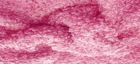 Karakul artificial ram skin. Red color. Incredibly high-quality artificial eco-fur under a young astrakhan (lamb) fabrics haute couture, Coat fabrics, texture, background, pattern