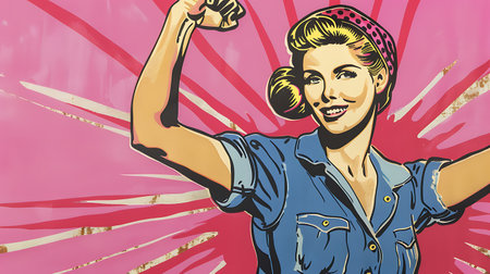 Girl shows her power in pop art and comics style. Vector illustration. Girl in retro style.
