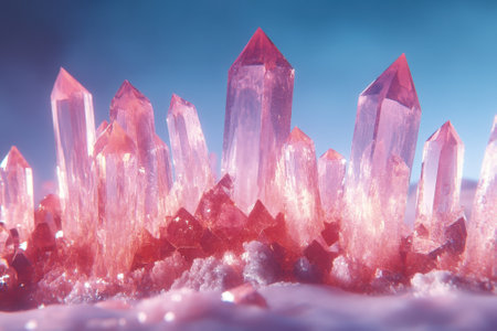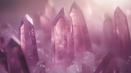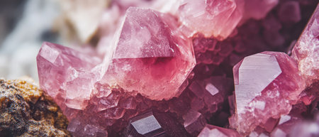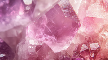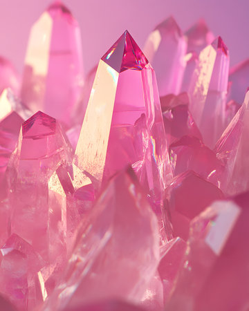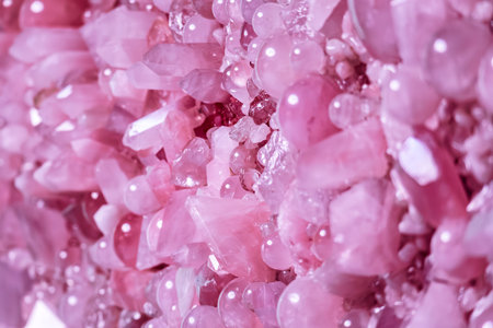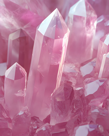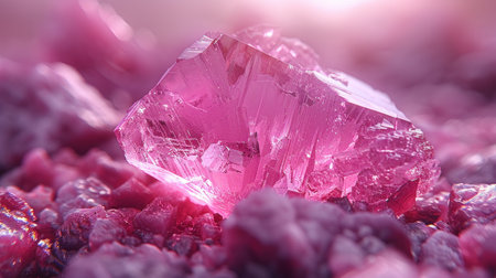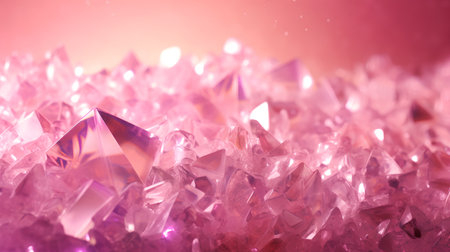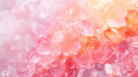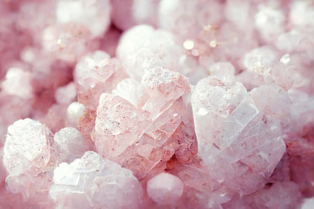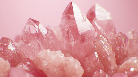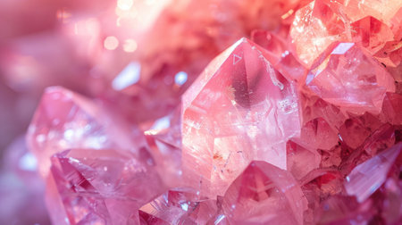 Explore the enchanting beauty of glimmering pink crystals basking in soft light. This image captures the delicate textures and vibrant colors of nature's jewels.