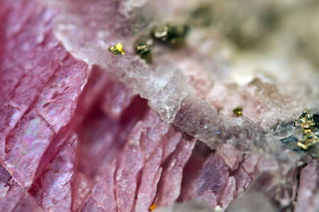 Pink crystals Rhodochrosite with particles of Pyrite. Natural texture of mineral for background. Beautiful background and wallpaper. Macro