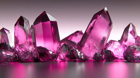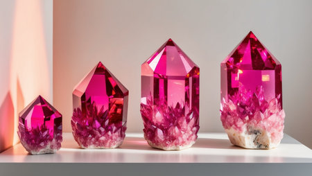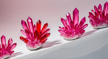 AI Generated. Pink and Red Crystal Formations with a Soft Pink Background