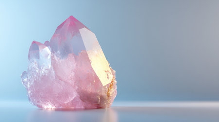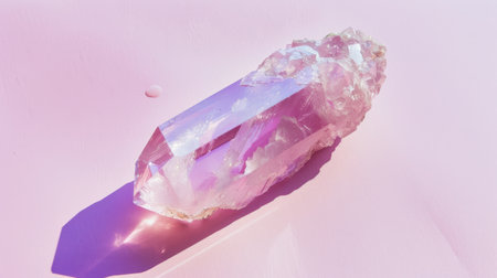 A stunning pink crystal rests on a softly illuminated pastel background, showcasing its unique textures and reflections. This composition captures both natural beauty and artistic essence, perfect for personal projects or creative designs.