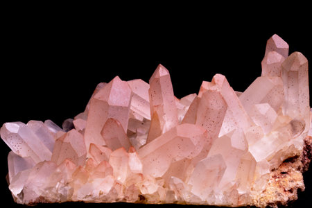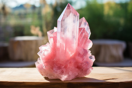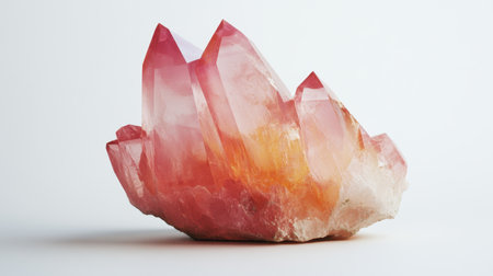 A captivating pink quartz crystal formation featuring sharp edges and delicate color gradients, ideal for discussions on nature, spirituality, and artistic design.