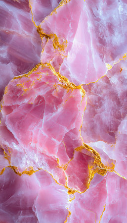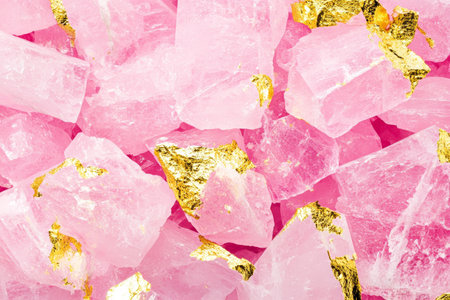 Pink Quartz and Gold Leaf Texture Luxurious and Aesthetic Gemstone Background.